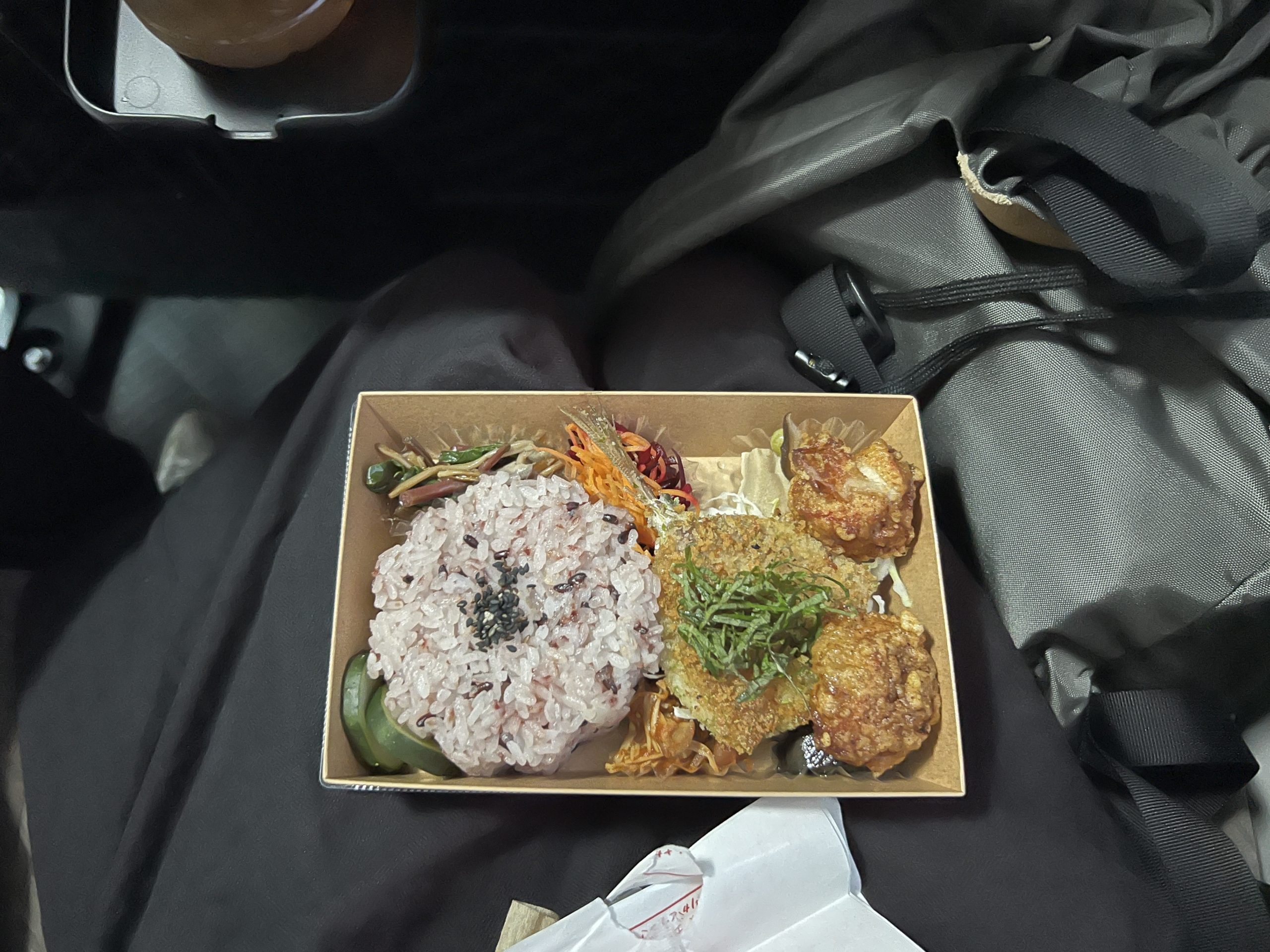横の紙袋の中に、商品がはいっています。