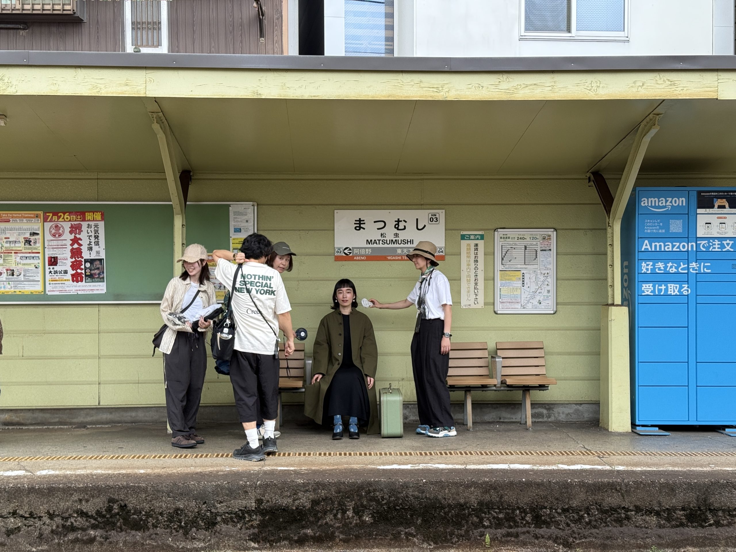 お次は、駅のホームにて。駅名がかわいいのです。「まつむし」だって。