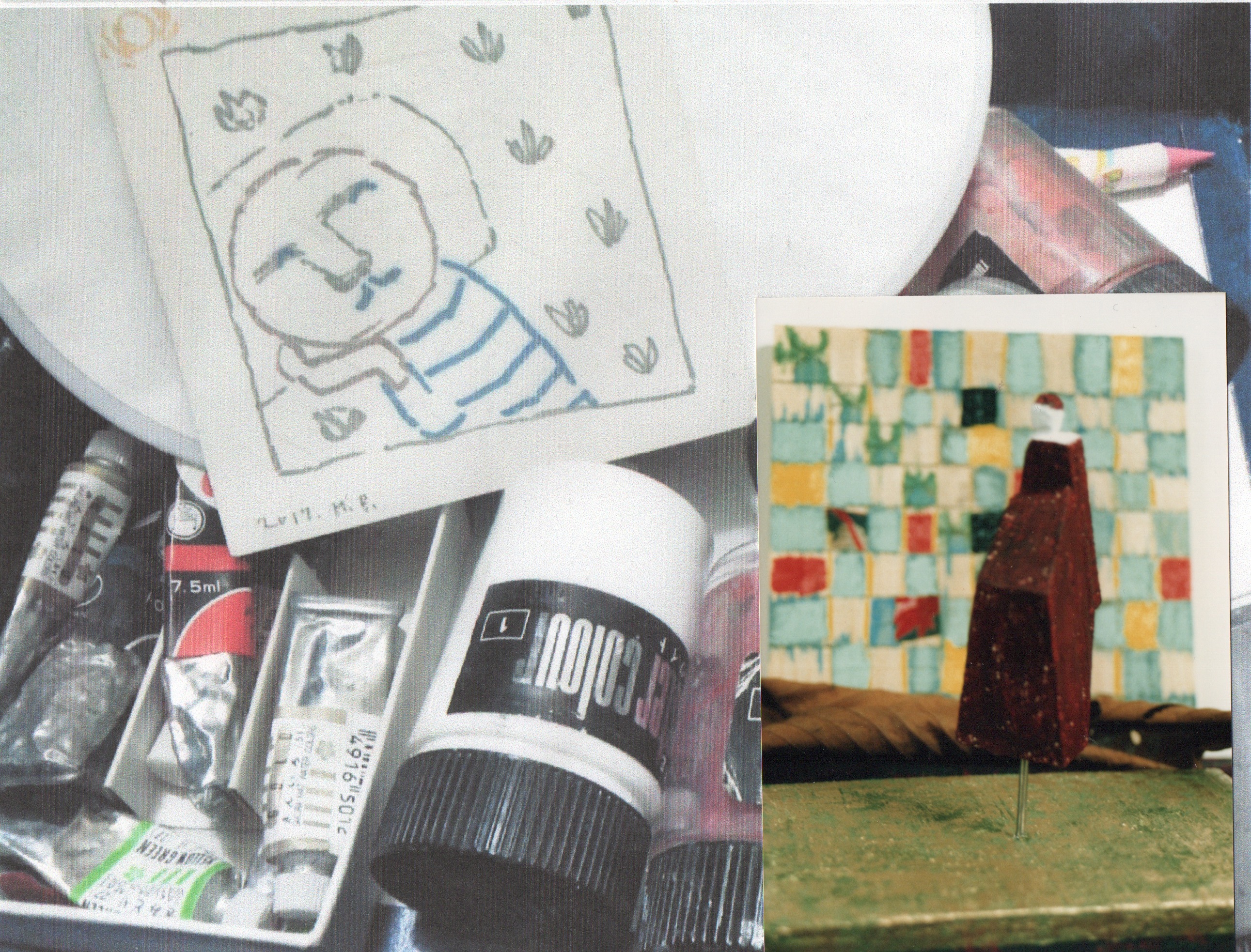 ひじをついてるのは あいつじゃないか」となったりして(タイル作品)