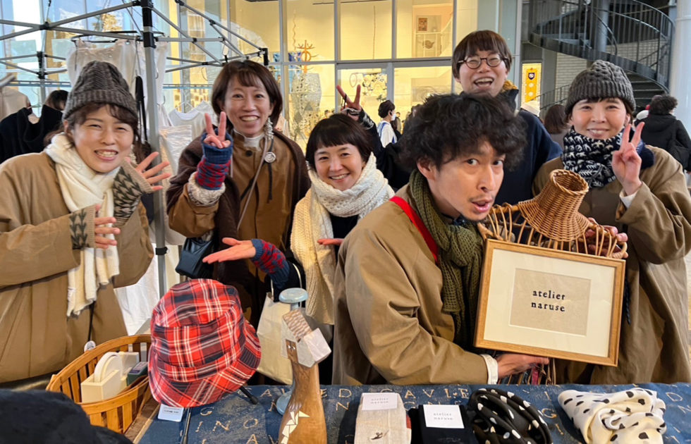 私たちアトリエナルセスタッフ5名に加え、サプライズゲストとして参加してくれた近所に住むカリスマ友人『ダルマ糸のTAKAKO』の計6名。非常に小心者の私たちですので、出店者には顔見知りの方々がたくさんいるとはいえ、「おしゃれな人たちがいっぱいくるよ。こわいよ。おしゃれな人、こわいよ」と何かと不安だったわけですが、来てくださったみなさんのおかげで緊張も徐々にほぐれ、調子を上げてゆき、結果、「たのしかったな。たのしかったな」と一同ホクホクとした気持ちで、お互いを讃えあうように、どこかなぐさめあうように、初のイベント出店を終えることができたことが本当に何よりでございました。